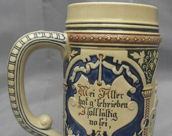 5 l mark on side. We have oktoberfest beer steins military historical german heritage sports castle and nautical themed steins hand painted and meticulously crafted by the finest artists in the westerwald of germany. This german beer stein celebrates the hofbräuhaus in munich münchen germany in full wrap decoration with hand painted relief details. German stoneware beer stein mug 1 liter wurzburger hofbrau ellisriverantiques.